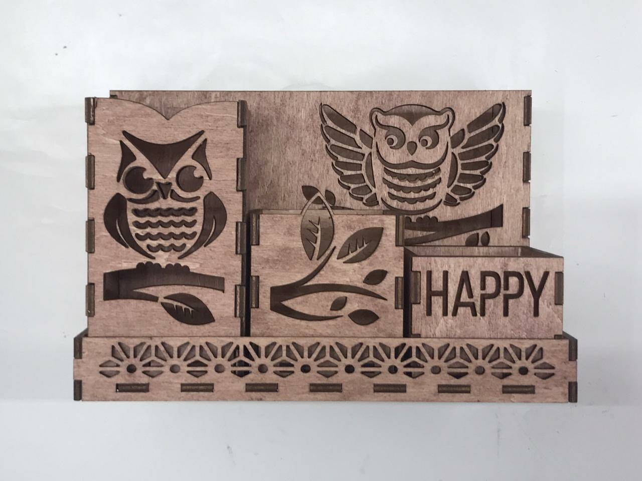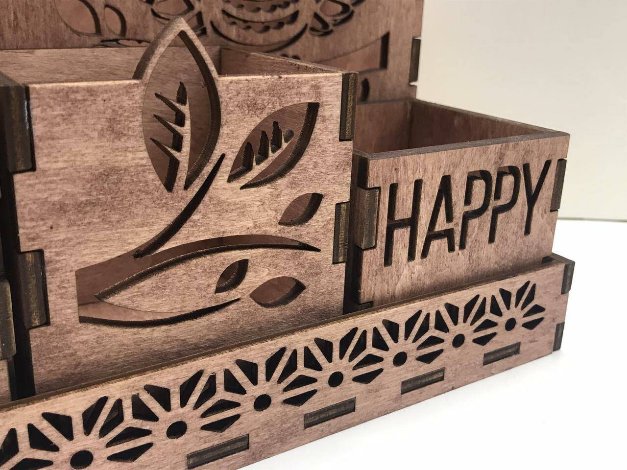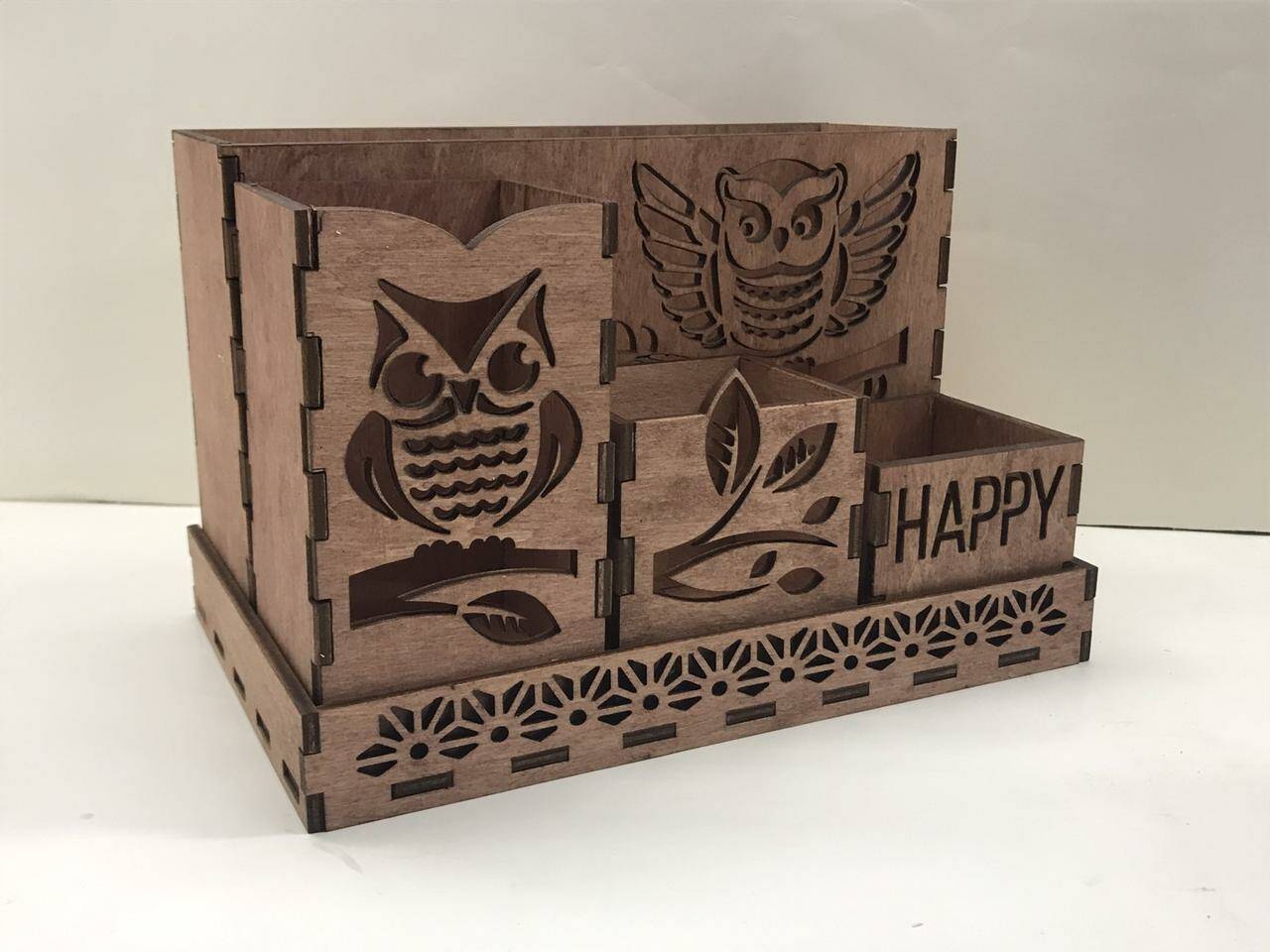 Деревянный органайзер для канцелярских принадлежностей PureWoodDecor 25х10х12 см