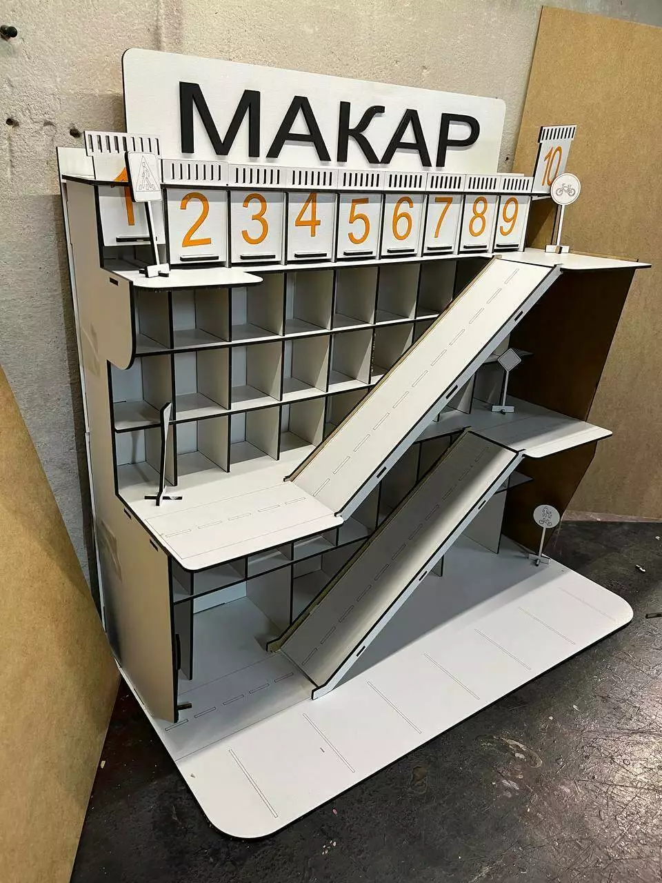 Сверху можно добавить имя ребенка гараж именной для машинок идеальный подарок для мальчика и прекрасное дополнение детской комнаты.