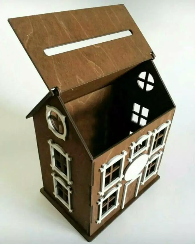 Копилка WoodCraft для денег в форме домика из дерева 23х16см