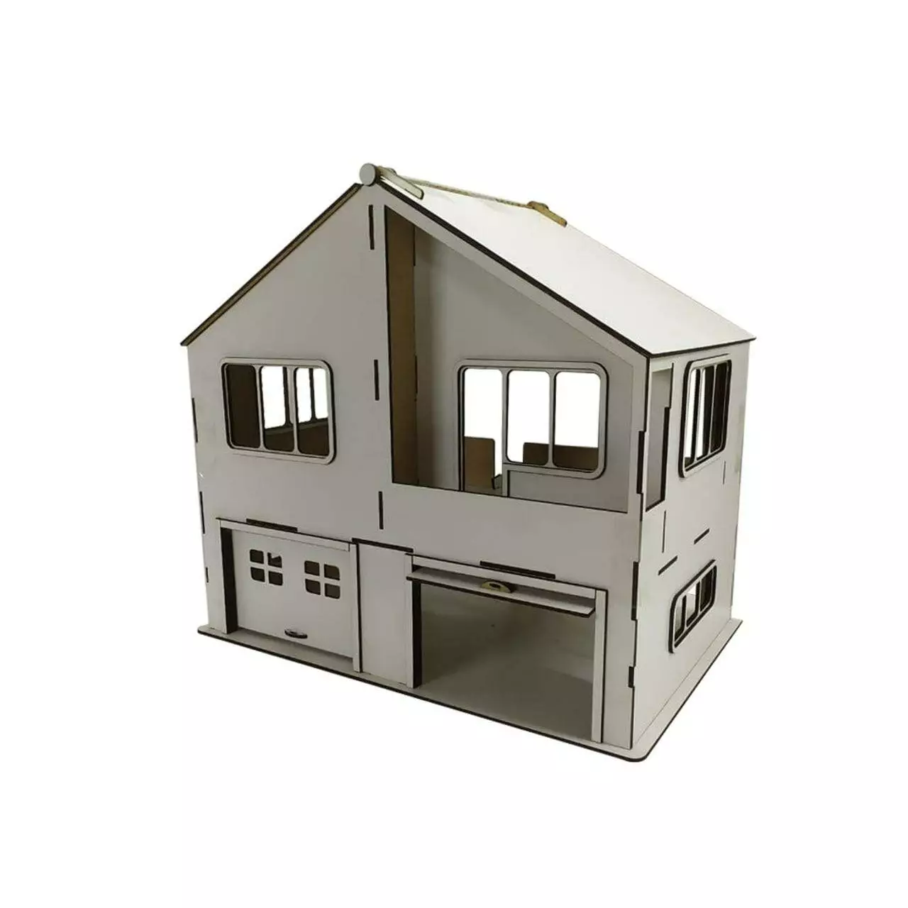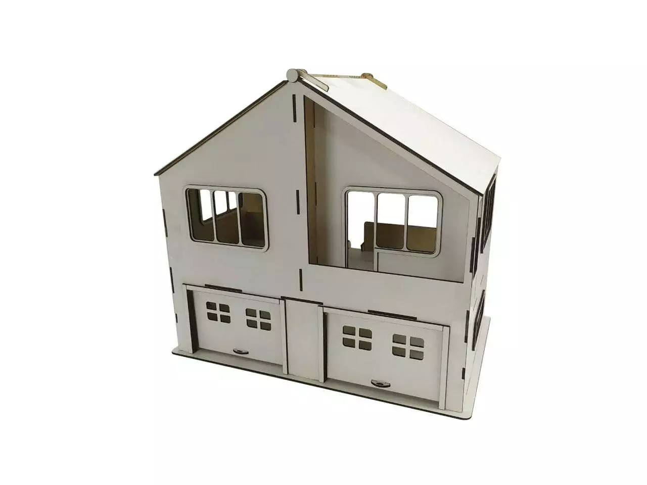 Кукольный дом с гаражом Woodcraft для детских машинок из дерева 40х30х44