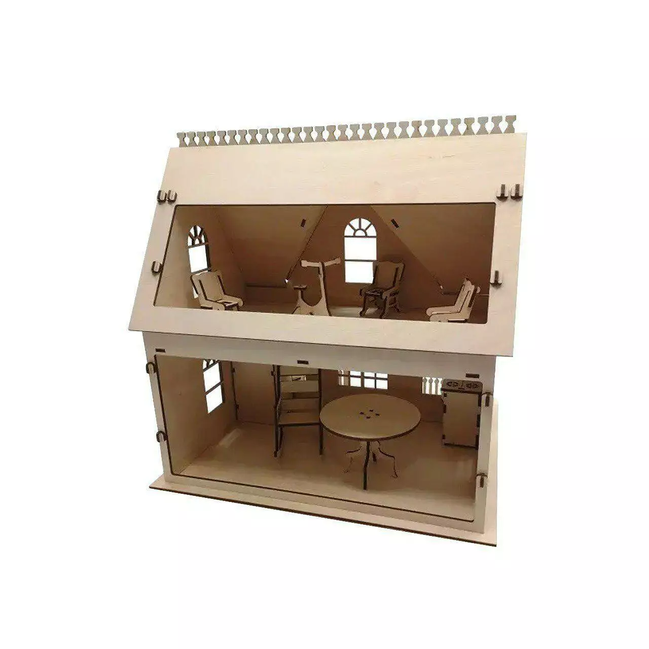 Кукольный домик Woodcraft из дерева с мебелью 33х30х33 см