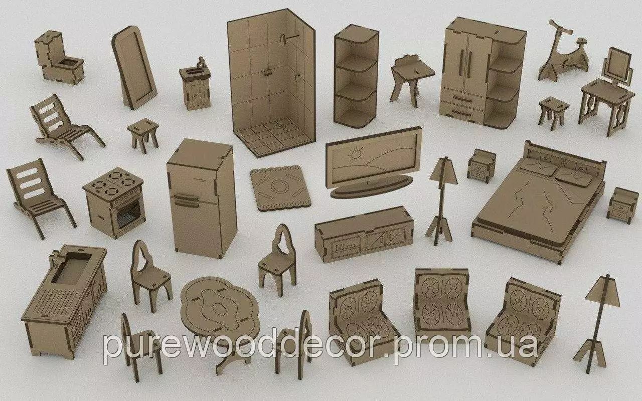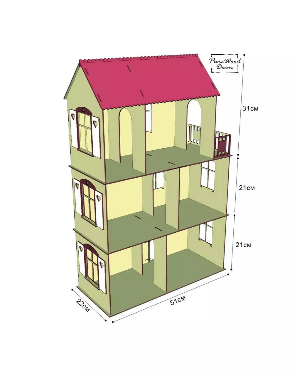 Кукольный Woodcraft домик с мебелью для лол 73х51х22см