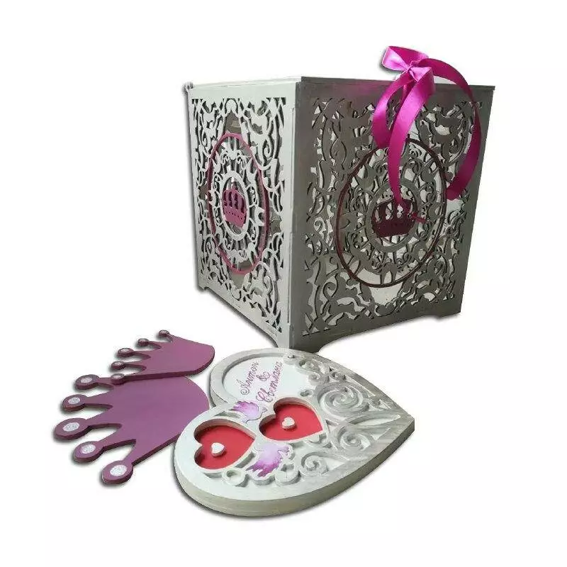 Набор свадебная коробка и подставка для обручальных кольца в виде сердца + короны