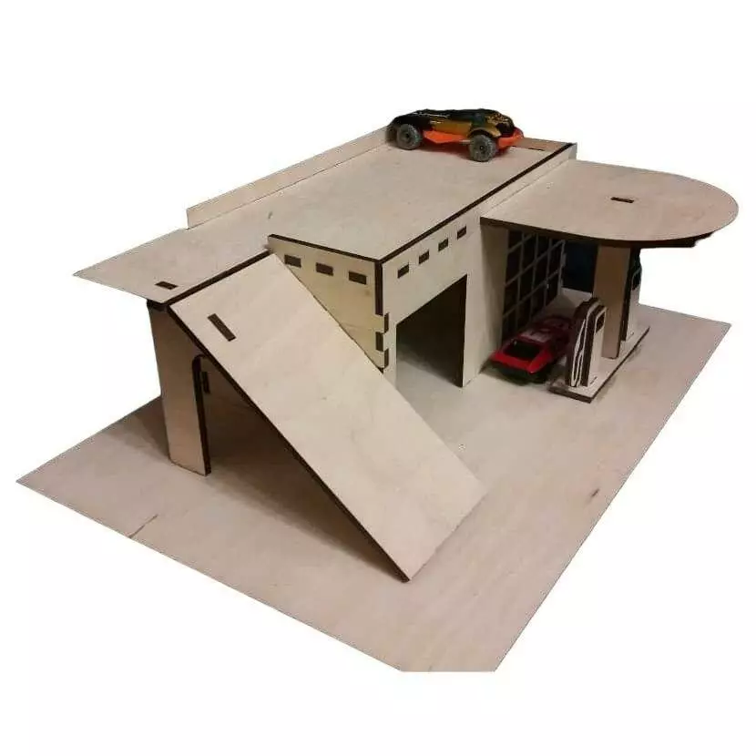 Парковка для машинок Woodcraft с заправкой из дерева 30х21х10см.