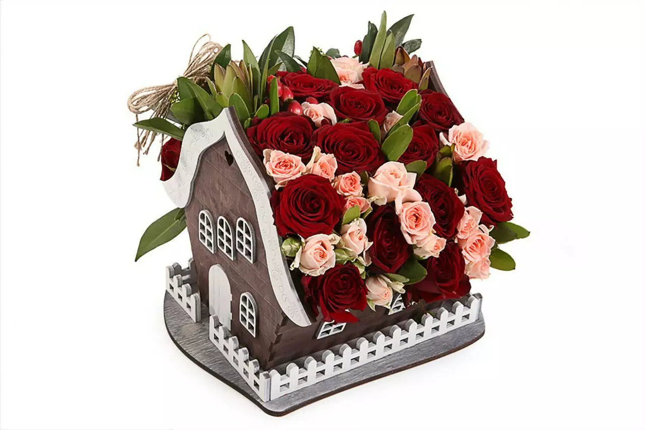 Подарочная корзинка для цветов WoodCraft 25х22х26см
