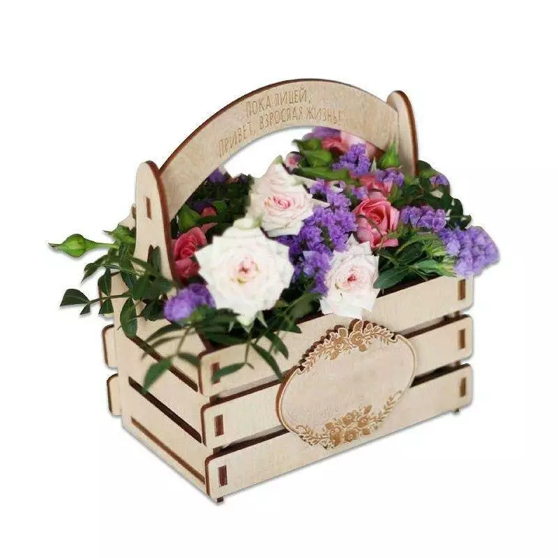 Подарочная корзинка для цветов WoodCraft 8х16х12см
