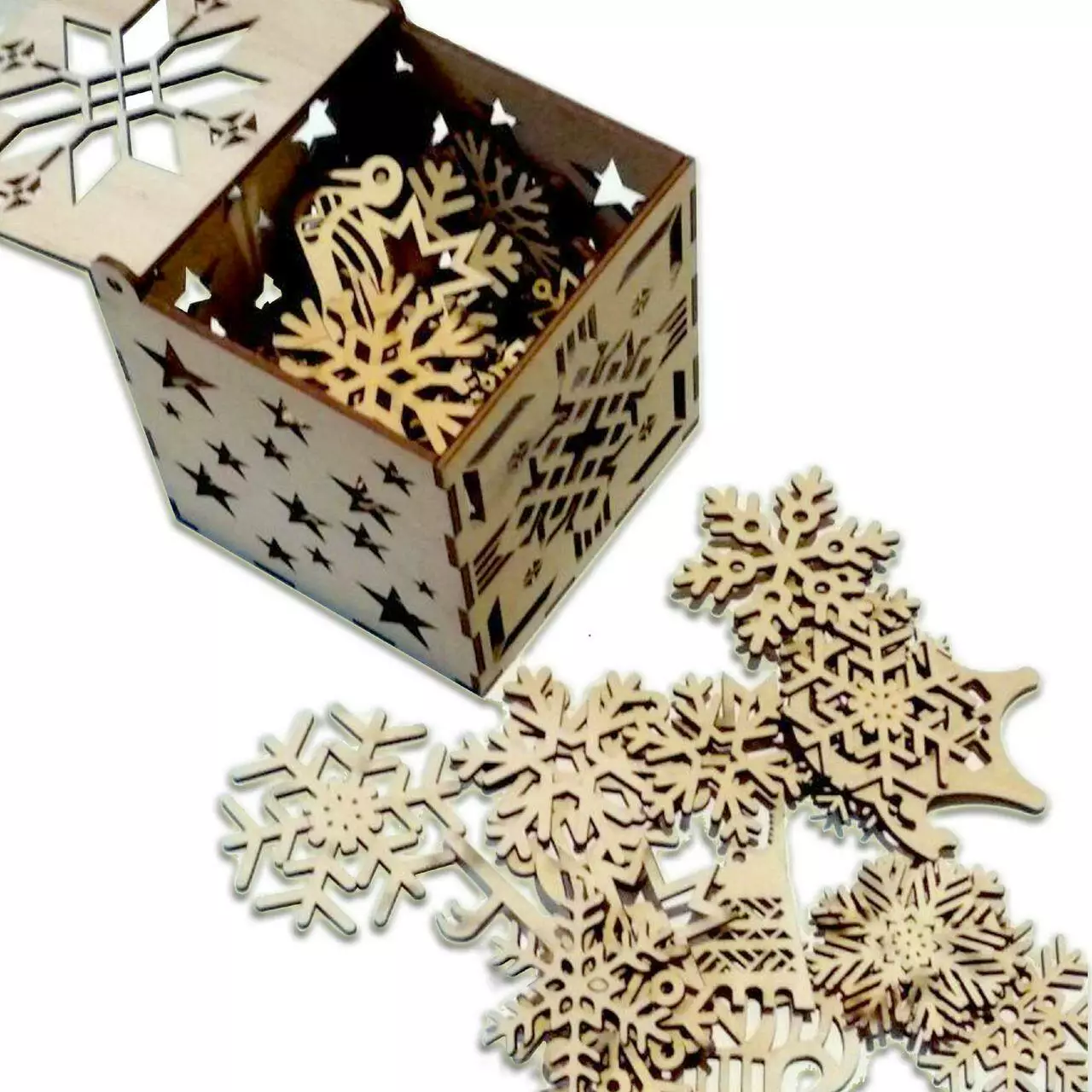 Рождественский набор игрушек Woodcraft из дерева на елку в коробке 54шт.