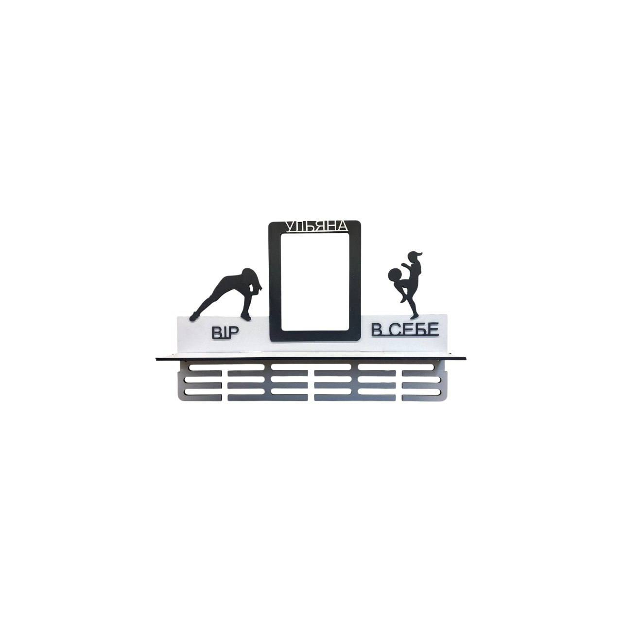 Вешалка для медалей для современных танцев и женского футбола с полкой и подсветкой 59х39 см Бело-черная