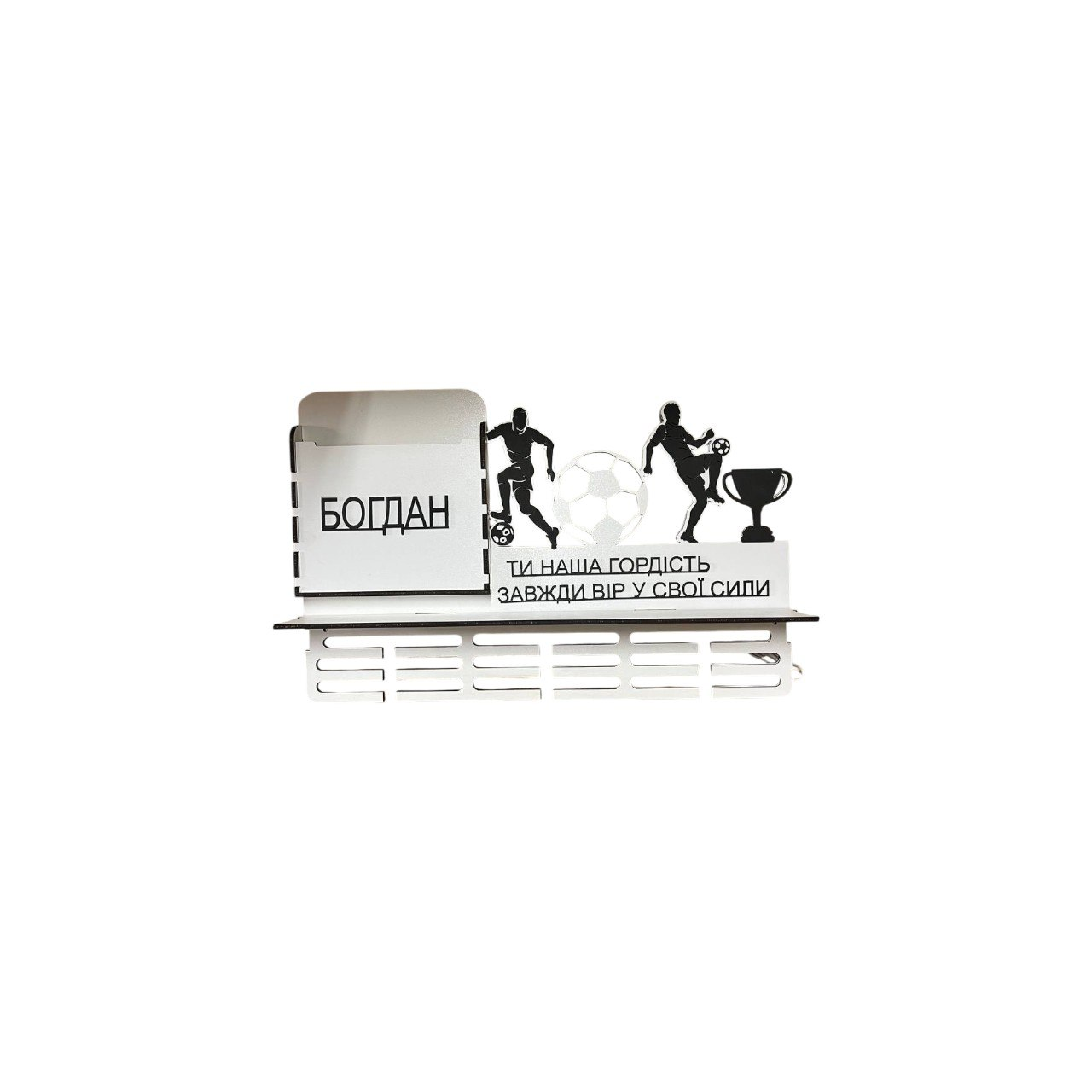 Вешалка для медалей футбол с полкой и подсветкой 59х39 см Бело-черная
