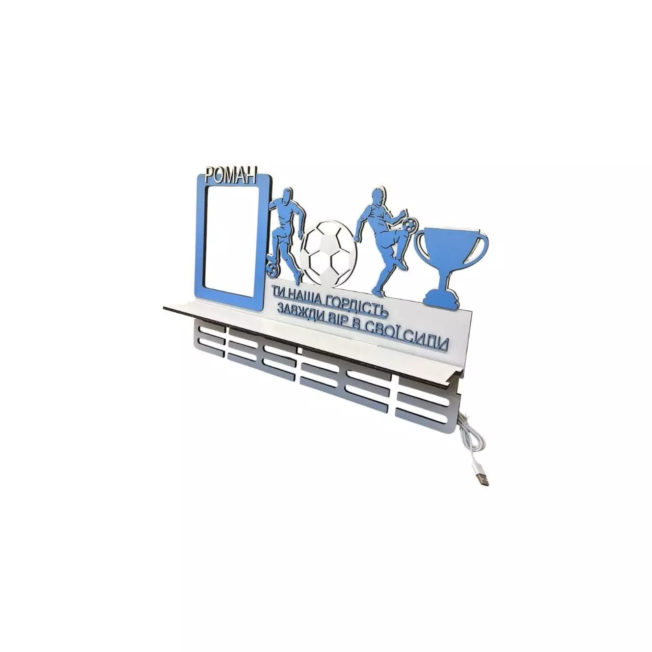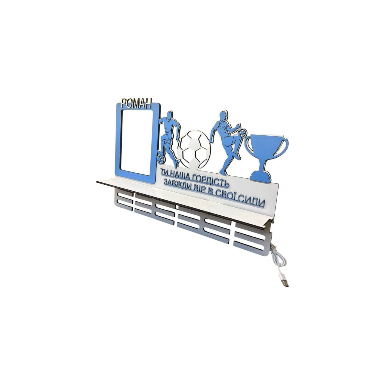 Вешалка для медалей футбол с полкой и подсветкой 59х39 см Голуба