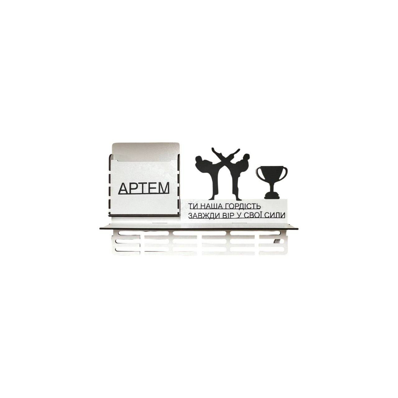 Вешалка для медалей карате имена с полкой и подсветкой 59х39 см Бело-чёрная