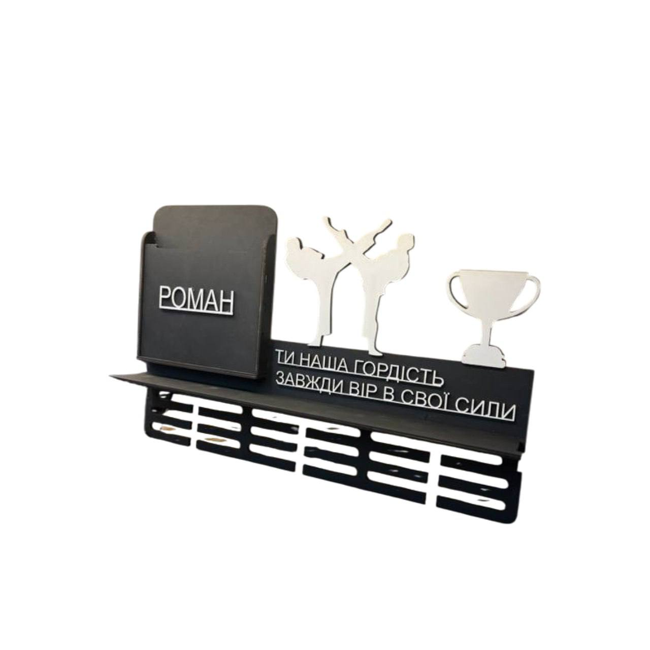 Вешалка для медалей карате с полкой и подсветкой 59х39 см черная