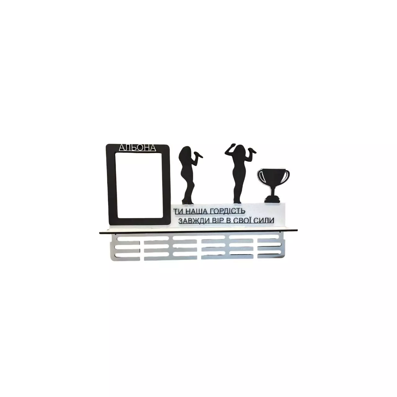 Вешалка для медалей Пение имена с полкой и подсветкой 59х39 см Бело-черная