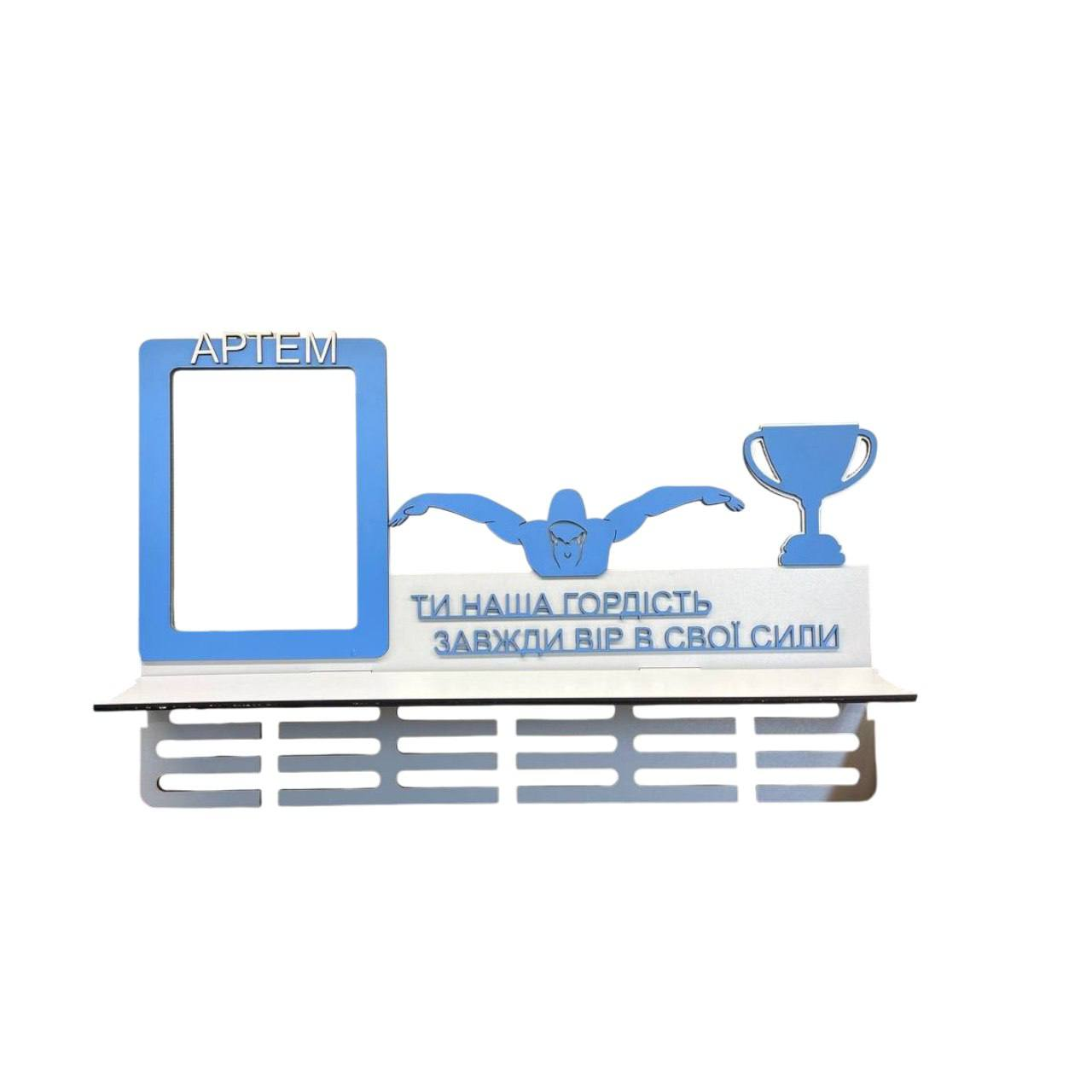 Вешалка для медалей Плавание с полкой и подсветкой 59х39 см Голуба