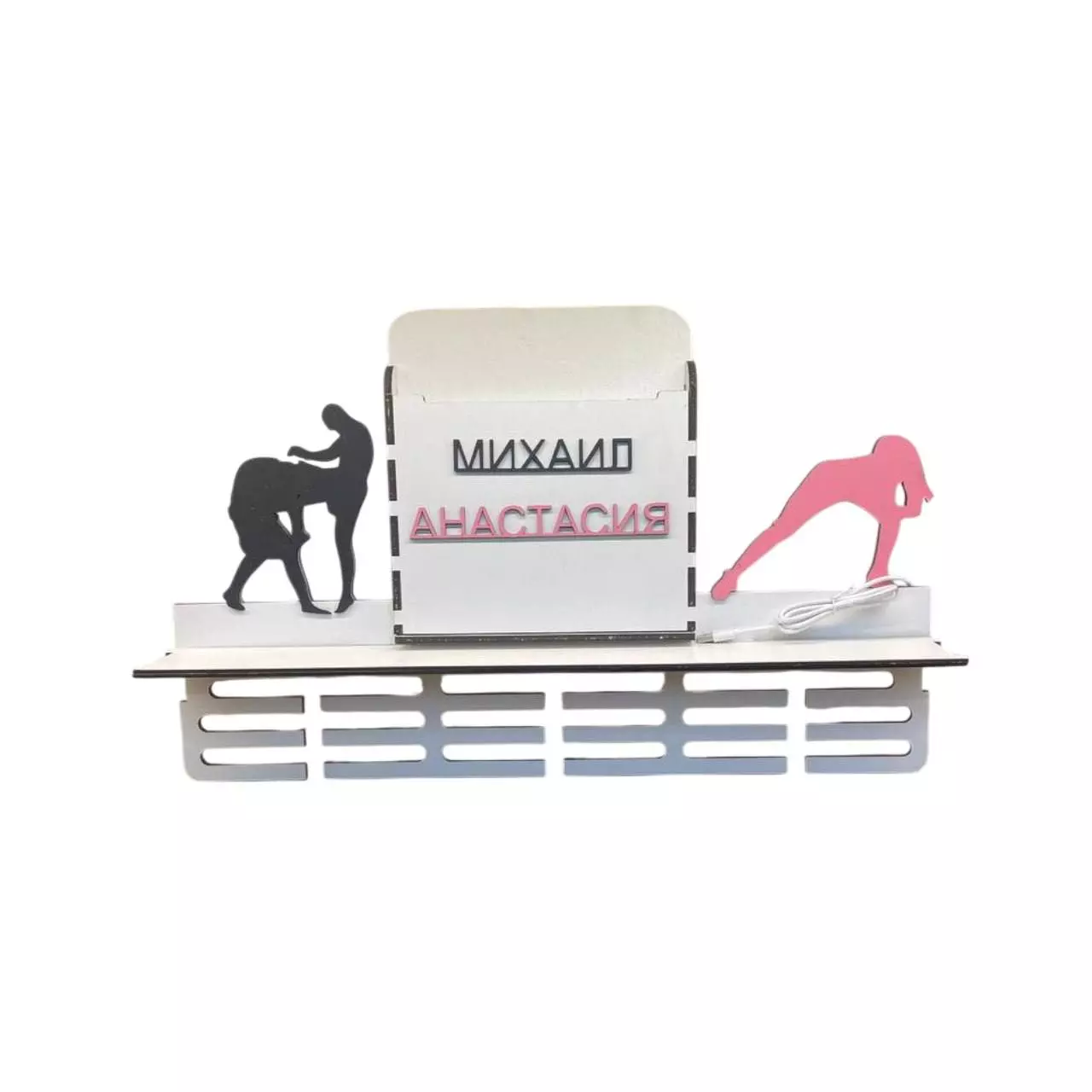 Вешалка для медалей смешанные единоборства и современные танцы имена с полкой и подсветкой 59х39 см Бело-черно
