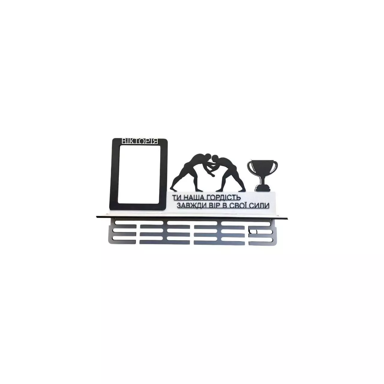Вешалка для медалей Смешанные единоборства имена с полкой и подсветкой 59х39 см Бело-чернаяая