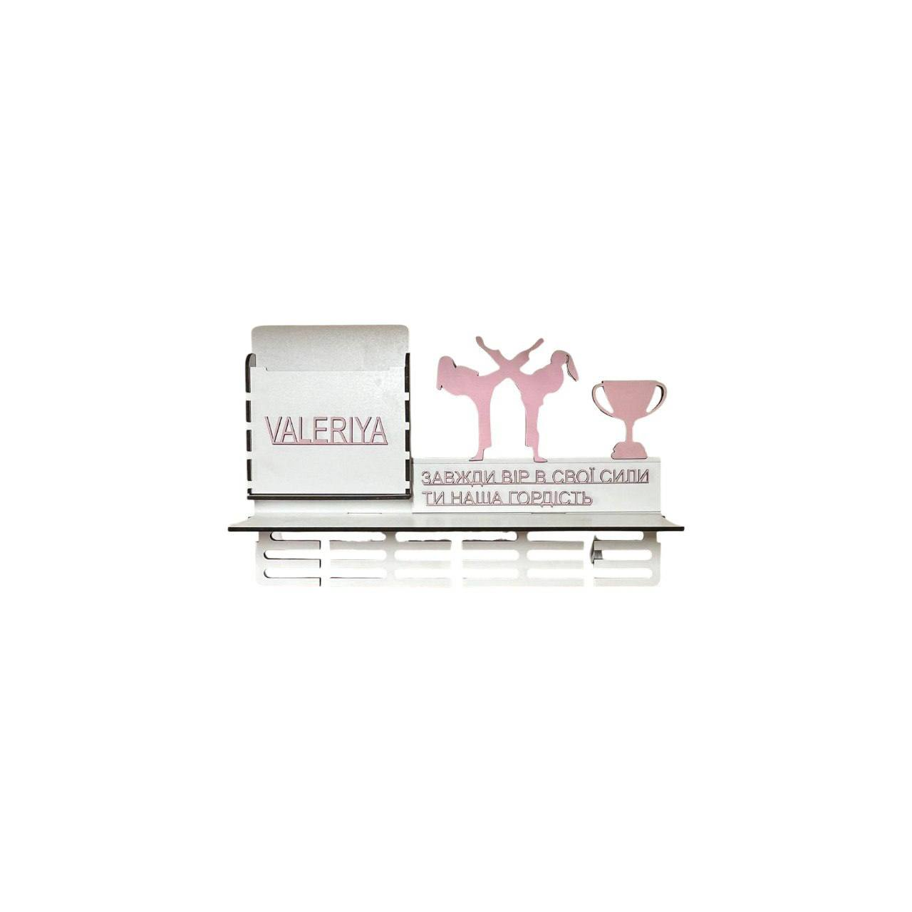Вешалка для медалей женское каратэ имена с полкой и подсветкой 59х39 см Розовая